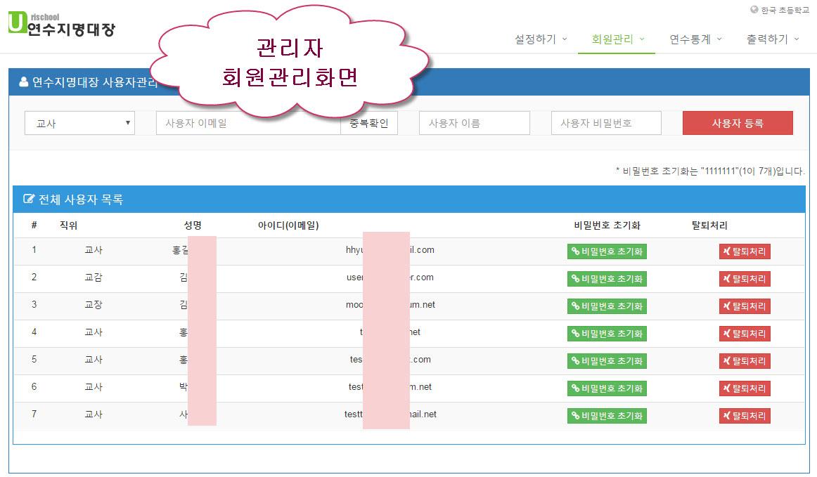 -간단한 정보만으로 사용자 일괄, 개별 등록 가능 및 쉬운 전출처리가 됩니다.