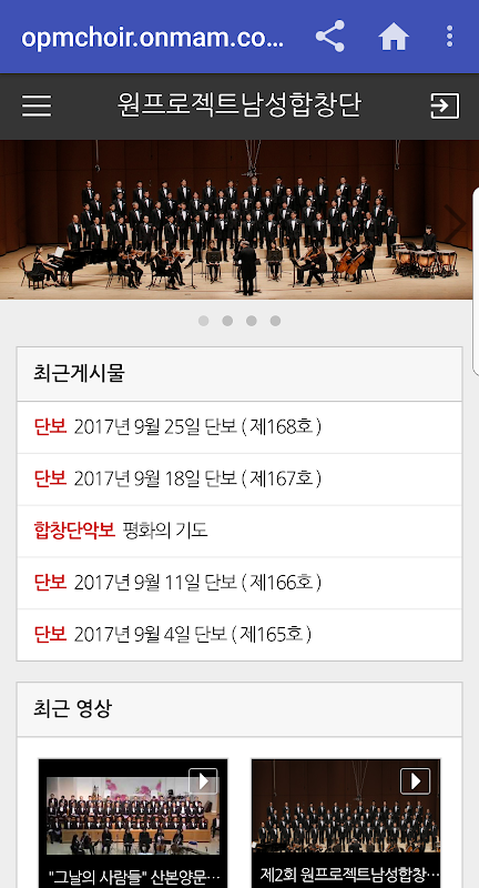 4. 소식광장: 단보, 합창단소식, 합창단일정, 합창단앨범, OPMC동영상