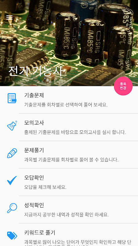 기출문제 - 각 시험별 기출문제를 풀어보는 메뉴입니다.