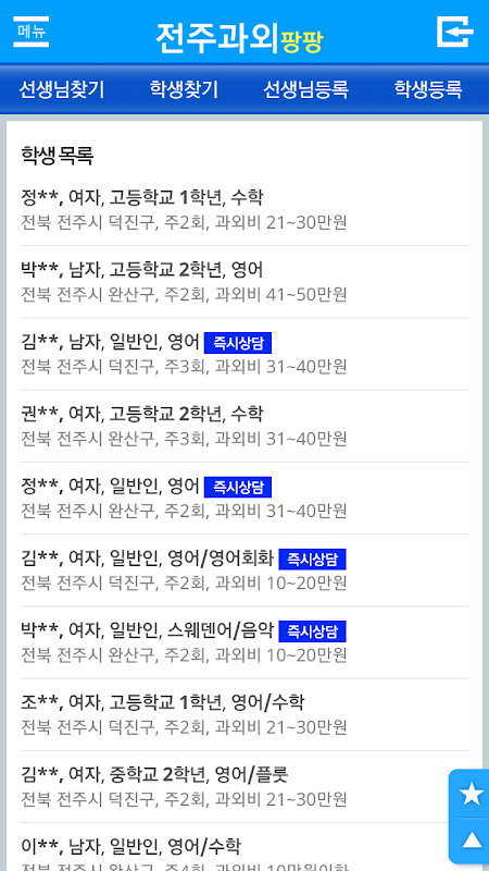 معلومات 전주과외팡팡- 완산구, 덕진구, 영어과외, 중국어, 일 APK