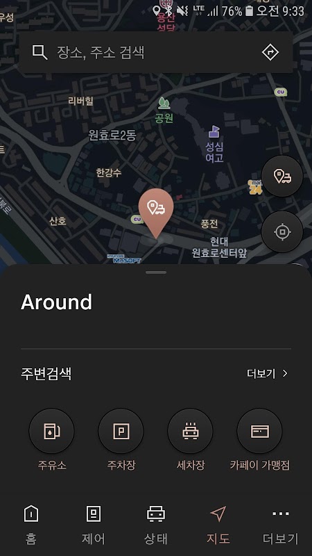 - عند طلب التحقق من موقع وقوف السيارة ، يتم البحث عن معلومات موقع السيارة الفعلي وتقديمها على الخريطة.