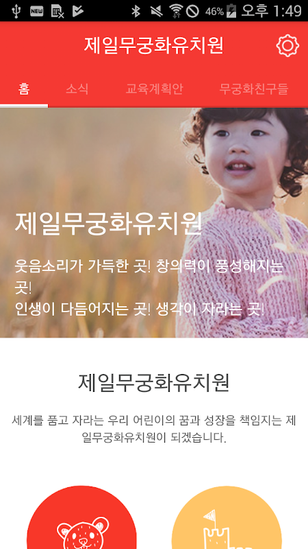 제일무궁화유치원의 모바일서비스를 위한 공식 어플리케이션입니다.