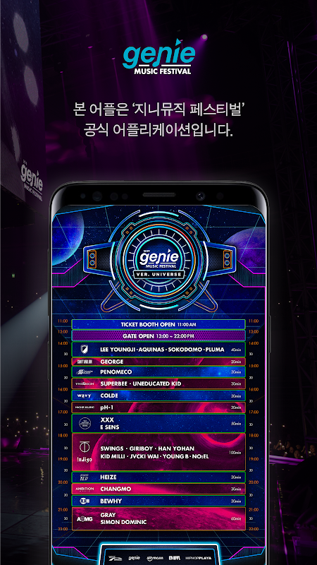 AI 음악플랫폼기업 지니뮤직에서 화려하게 개최하는 ‘지니뮤직 페스티벌’ 공식 어플리케이션입니다.