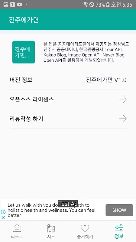 تم تطويره باستخدام المعلومات التي تم الكشف عنها من خلال واجهات برمجة التطبيقات المفتوحة لمنظمة السياحة الكورية TourApi و kakao و Naver.