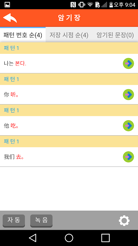 - 잘 학습되지 않은 문장들을 암기장에 따로 모아 기억될때까지 학습할 수 있습니다.