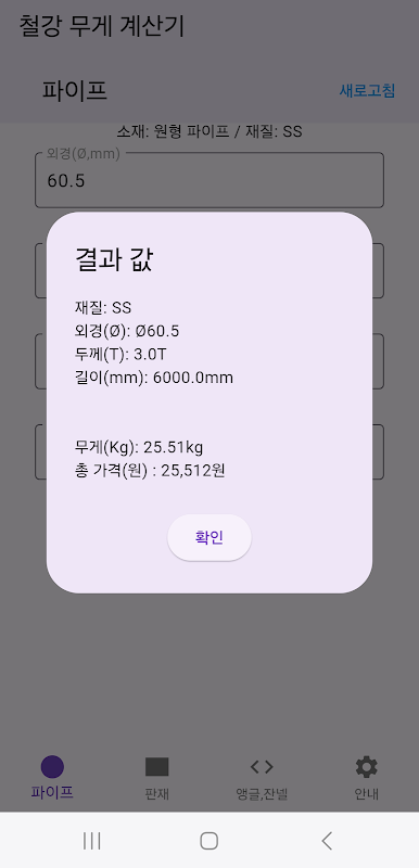 철강 무게 계산기 - 파이프 , 판재, 앵글, 잔넬 1.4.0