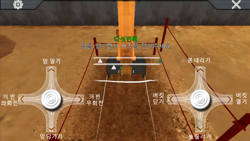 굴삭기 자격증 취득을 위한 면허시험 중 실기시험 연습을 위해 만들어진 앱의 체험판입니다.
