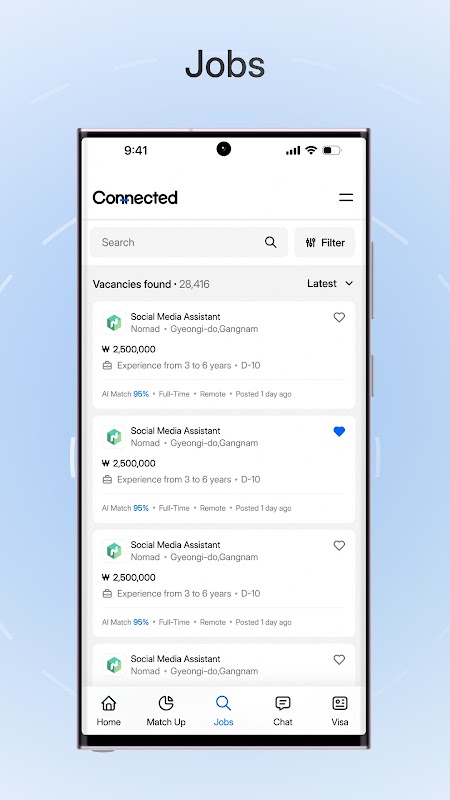 هل تبحث عن وظائف في كوريا الجنوبية؟ 커리어빌더 هي المنصة النهائية المصممة خصيصًا للأجانب والمقيمين الباحثين عن فرص عمل مثيرة. سواء كنت تبدأ حياتك المهنية، أو تغير وظيفتك، أو تستكشف خيارات التأشيرة، فإن تطبيق 커리어빌더 يجعل عملية البحث عن وظيفة سريعة وسهلة وفعالة.