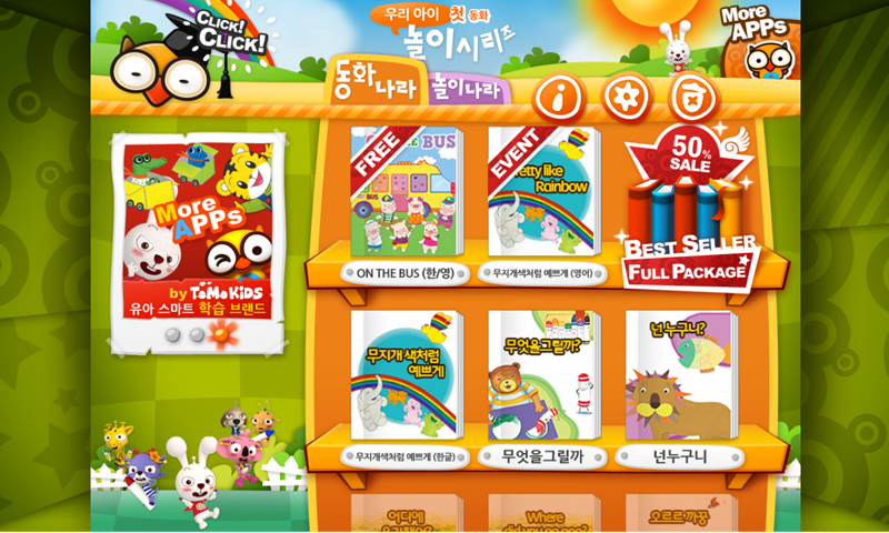 어린 아이들에게 필요한 동화를 엄선하여 동화를 통해 감성발달 정서 안정감 등의 초점을 두었습니다.