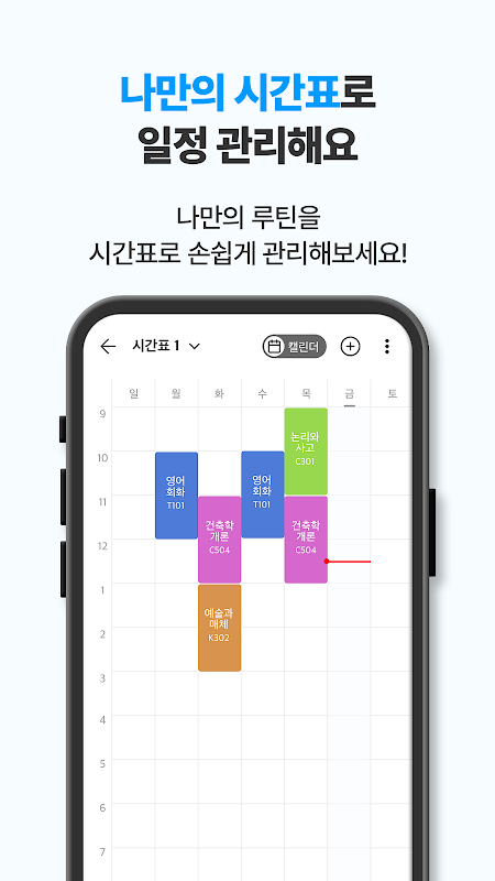 여러 개의 시간표를 사용하는 분들을 위해 원하는 순서대로 리스트를 정리할 수 있는 기능이 추가되었습니다. 자주 쓰는 시간표를 맨 위로 올려두고 한층 더 빠르게 확인해보세요!
