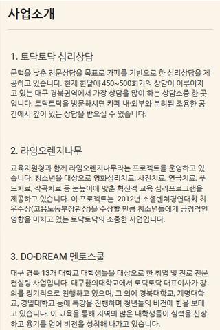 تلقت المؤسسات الاجتماعية Banwoldang الحالية شهادة الحكومة (1ST شوب)، بالقرب من جامعة Yeungnam (مخزن الثاني)، manchondong (3 فرع) في pyeonggun ثلاثة أشهر من 500 شخص للحكومة عادة ما يقدمون المشورة وكالة في المنطقة دايجو لتقديم المشورة النفسية ودخلت في شراكة مع الشركات الرائدة ورعاية من سكان العقل.