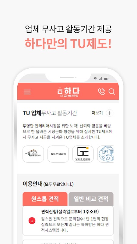 - عرض الأسعار الشامل عبارة عن خدمة تقوم بإجراء عروض أسعار مقارنة من خلال مطابقة البيانات بعد القياسات الفعلية في الموقع بواسطة Hada، ويتم تقديم الخدمة فقط في مناطق سيول وإنتشون وجيونج جي. يلزم إجراء فحص في الموقع لمرة واحدة، ويستغرق تسليم عرض الأسعار أسبوعًا واحدًا من تاريخ الفحص