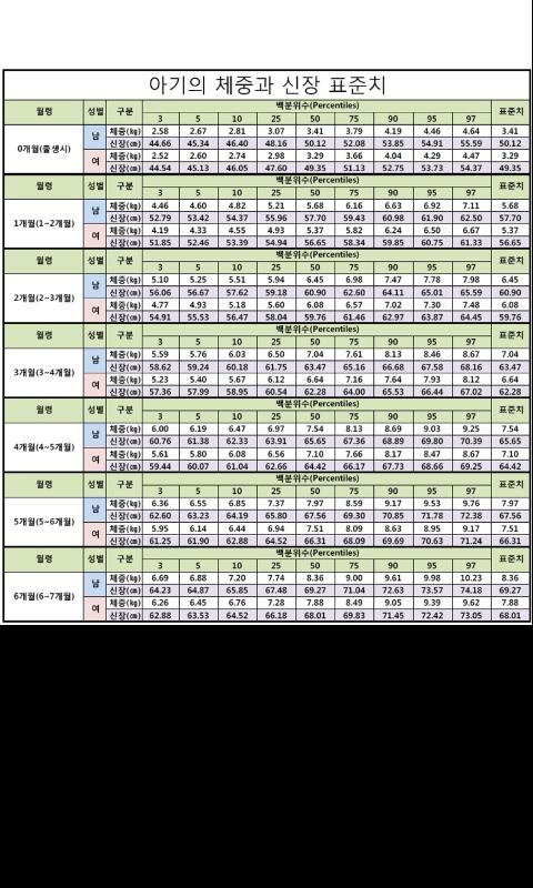 한국소아 발육 표준치(육아,아기,소아)