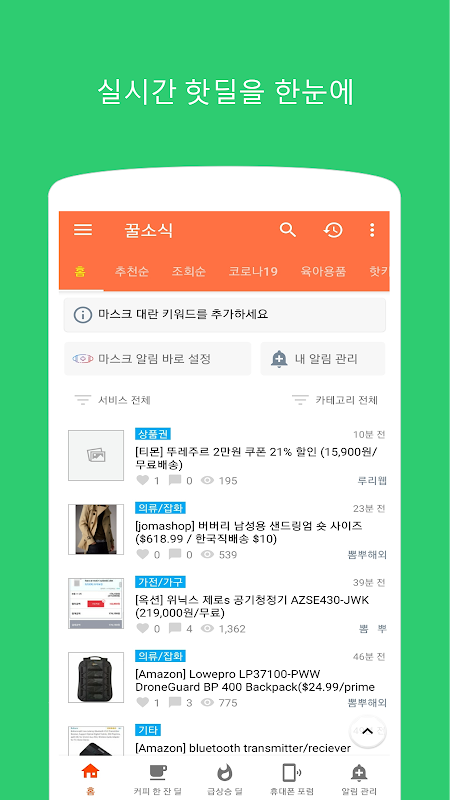 핫딜 알리미 - 꿀소식 - 코로나19 안전 마스크 핫딜도 빠르게 캐치하세요 1.9.3
