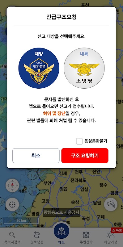 - يوفر إرسال معلومات الموقع باختيار خفر السواحل الكوري (١٢٢) أو الوكالة الوطنية للإطفاء (١١٩).