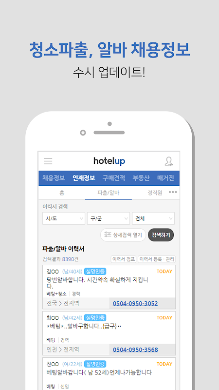 호텔업 - 숙박업 채용정보, 호텔, 모텔, 펜션 1.4.3