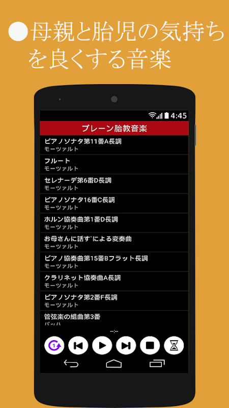 希望ジャンルの胎教音楽を選択して聞く機能です。タッチするだけで欲しい音楽を聞くことができます。