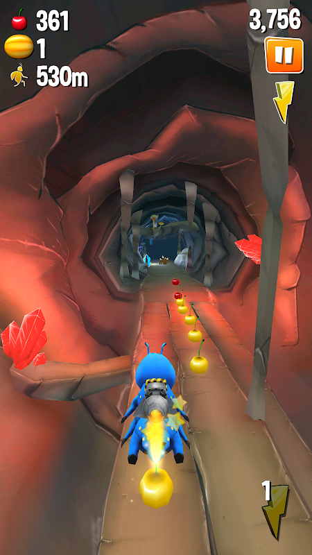 الحفاظ على سرعتك النفاثة يمكن أن يكون مرهقا جدّا لذلك قم بجمع كل الكرز والبطيخ في طريقك! سوف تساعدك الفاكهة على ترقية حشرتك وتحقيق أرقام قياسية جديدة! راقب مختلف صناديق زيادة الطاقة التي يمكن العثور عليها في جميع الأنحاء ولا تفوت أي فرصة لأخذ واحد منها! فذلك سوف يساعدك على البقاء على قيد الحياة لفترة أطول ويُسهِّلُ عليك تحقيق جميع الأهداف الجنونية