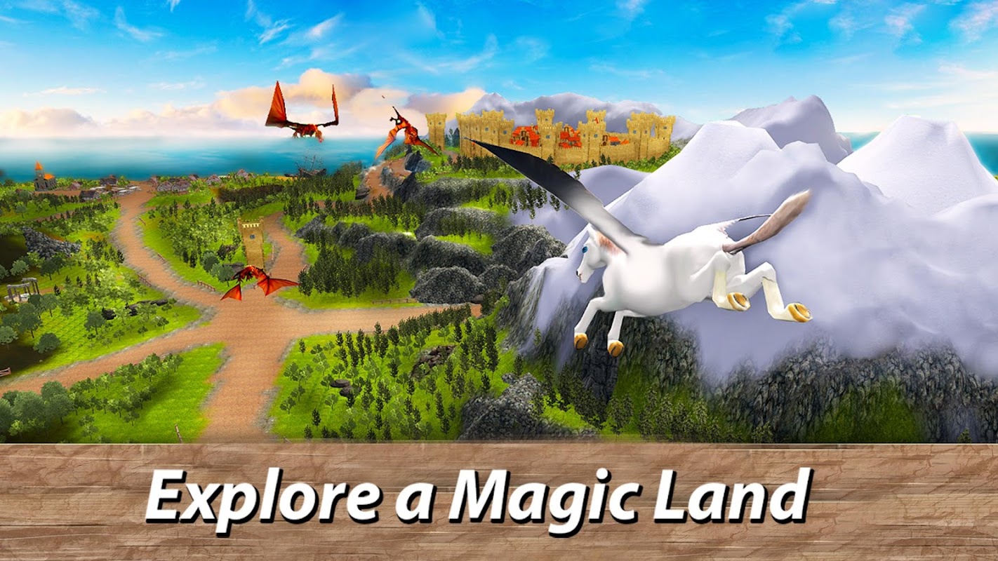 You’re nor the only magic pegasus in the fantasy kingdom - find your flying horse kind and make a herd to fight for survival together in the animals simulator. Fantasy kingdom is full of animal magic and danger, Pegasus survival depends on support of your horse herd. Go magic like fantasy around!