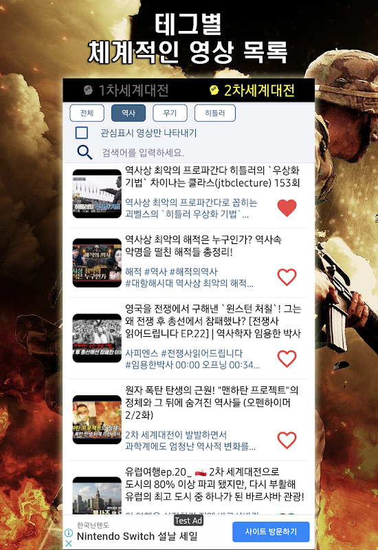 유익 하고 재밌는 영상 1500 해 어플 에 담았 습니다. 때론 전쟁 의 참상 을 ، 전쟁 이 낳은 영향 ، 인물 에 대해 재밌게 살펴 보시기 바랍니다.