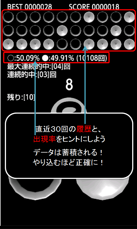 最高得点は 20回連続的中。2の20乗の1048576ポイント!