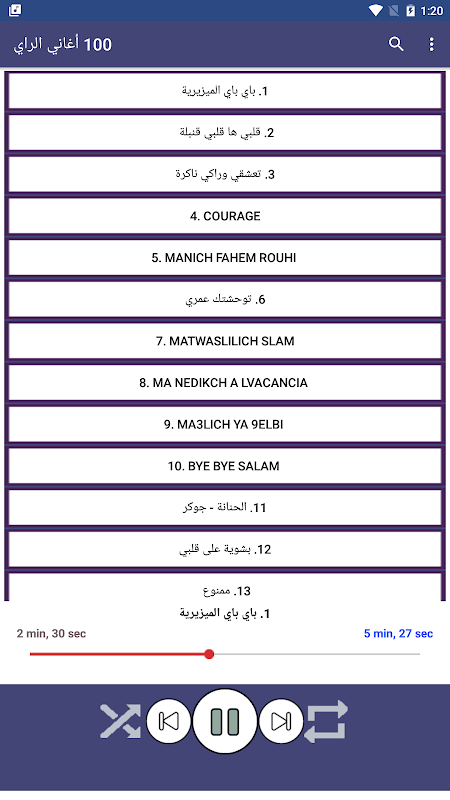 3. يحتوي التطبيق على اروع 100 اغنية راي جديدة + قديمة