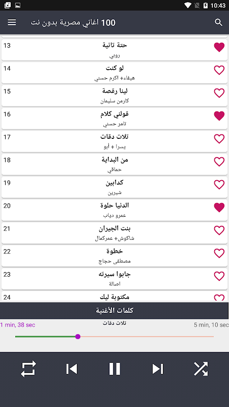 ✅ يحتوي على كلمات كل اغنية مع اسم الفنان الخاص بالأغنية