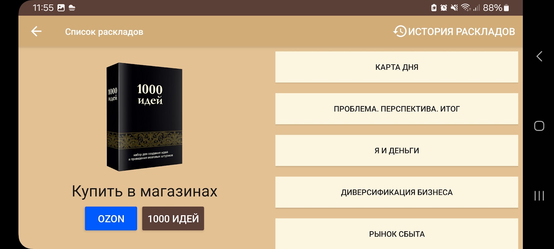 "1000 فكرة" عبارة عن مجموعة تستخدم للعصف الذهني والألعاب الجماعية والتمارين النفسية وجلسات التدريب. ستجد في هذا التطبيق تمارين وتقنيات جاهزة لتوليد أفكار تجارية تحت ضغط الوقت والكتلة الإبداعية. وسوف يساعد أي شخص على معرفة كيفية تكييف أعماله مع الواقع الحالي، أو تطوير منتج جديد أو استراتيجية ترويج نارية.