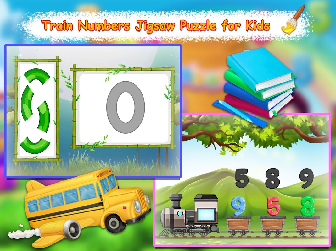 مطابقة الأرقام: املأ الفراغات مثل الظل، وهي لعبة متقدمة تُظهر الأرقام في مكان فارغ. يملأ الأطفال الفراغات بالحل الصحيح من الرقم الموجود على القطار. أطلق البالونات: أطلق البالونات التي تحمل الرقم المطابق الذي يحتويه المدفع في لعبة البالونات.