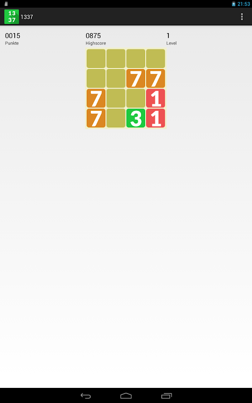 Wenn durch das Schieben 4 Zahlen nebeneinander 1337 ergeben, schüttle dein Smartphone. Du erhälst dann besonders viele Punkte.