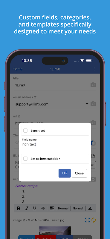 يجمع 1LimX بين أفضل ما في العالمين: أداة حفظ كلمات مرور آمنة وأداة تشفير قوية. بفضل التشفير في وضع عدم الاتصال، والمزامنة السحابية الشاملة، والميزات سهلة الاستخدام، فهو الحل الأمثل لحماية حياتك الرقمية.
