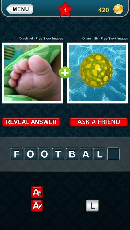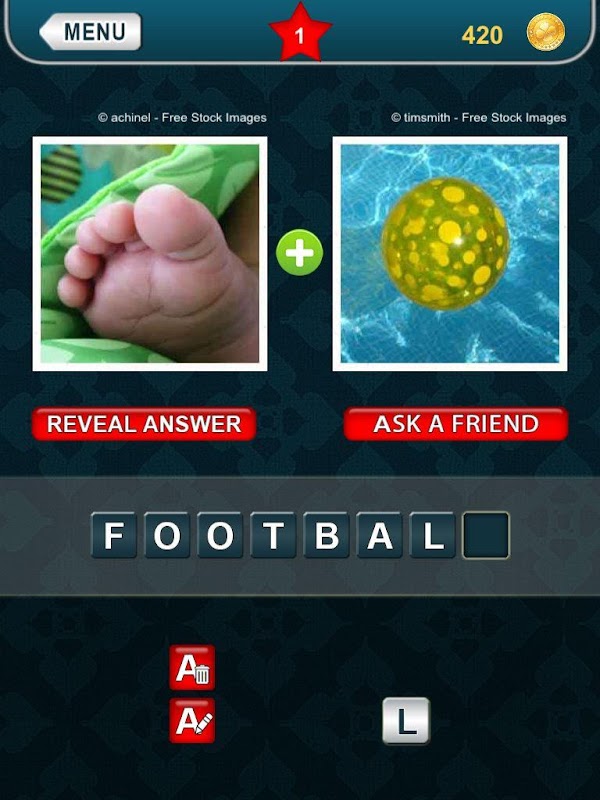 Each level contains 2 pics. Combine them to create 1 word! Can you guess the word?