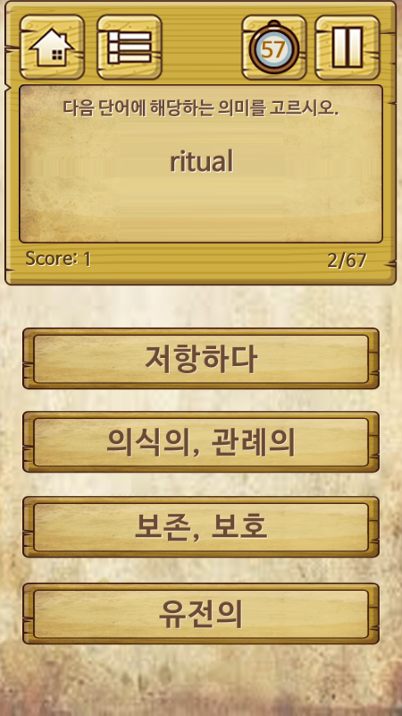 1. 영한학습, 한영학습, 문장(혹은 콜로케이션)학습 선택기능