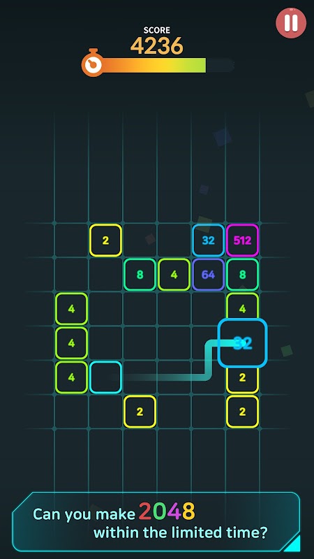 * في وقت محدد، ادمج الكتل التي تحمل الرقم نفسه بسرعة لمواصلة اللعبة.