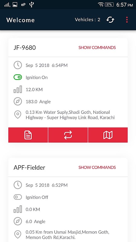 تمكنهم من تتبع سيارتهم بطريقة رقمية. يوفر هذا التطبيق أحدث موقع بالإضافة إلى "سجل الرحلات" في وقت محدد. يوفر التطبيق للعملاء إرسال الأوامر إلى سيارتهم للموقع ، وتمكين / تعطيل المحرك وما إلى ذلك.