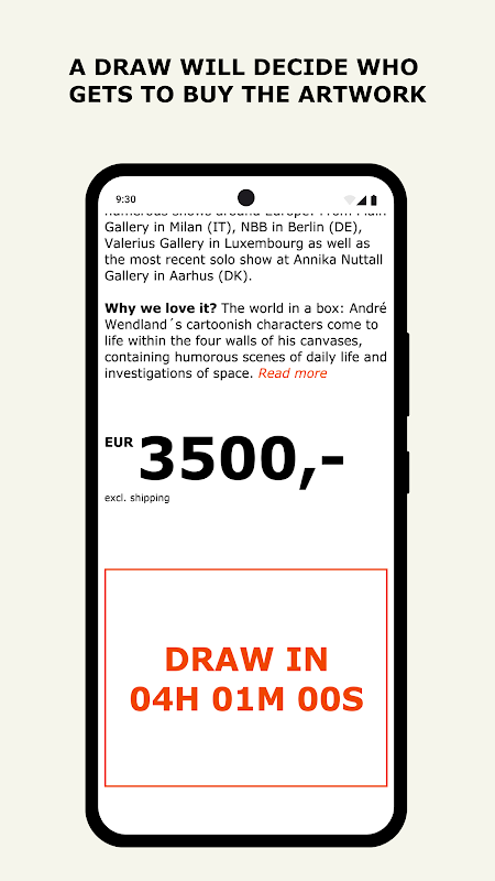 - نظام السحب العادل والممتع: بعد مرور 24 ساعة، سيتم إجراء سحب لتحديد من سيحصل على فرصة امتلاك العمل الفني. وهذا يعني أن الجميع لديهم فرص متساوية، بغض النظر عن علاقاتهم أو خبراتهم في عالم الفن.