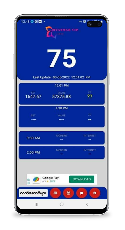 يتم إنشاء هذا التطبيق لعرض النتيجة المباشرة ثنائية الأبعاد يوميًا ويمكنك الحصول على رقم محظوظ باستخدام هذا التطبيق. جميع أرقام الحظ مجانية لجميع المستخدمين. استخدام سعيد ، شكرا لجميع المستخدمين الأعزاء.