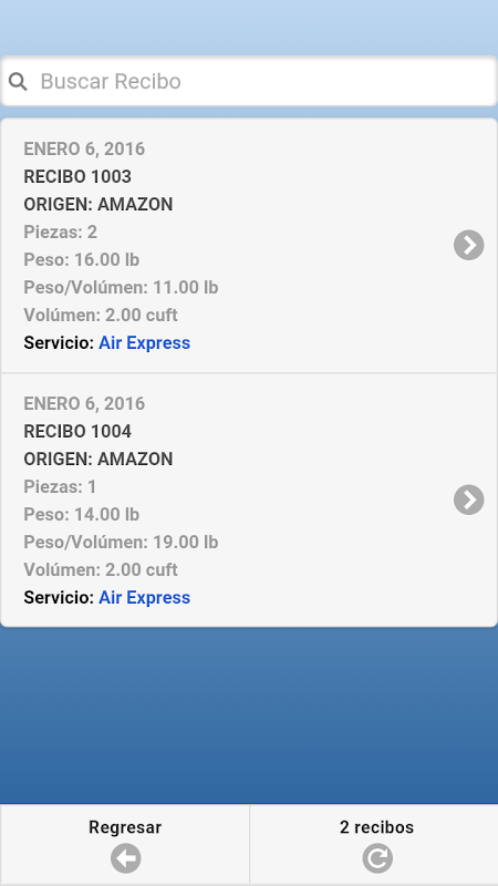 * Búsqueda de Recibos por Número de Recibo y/o Rastreo (Tracking).