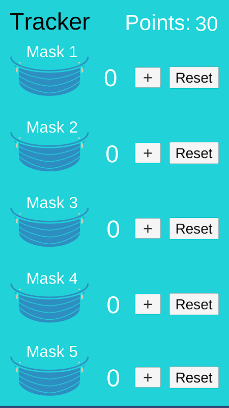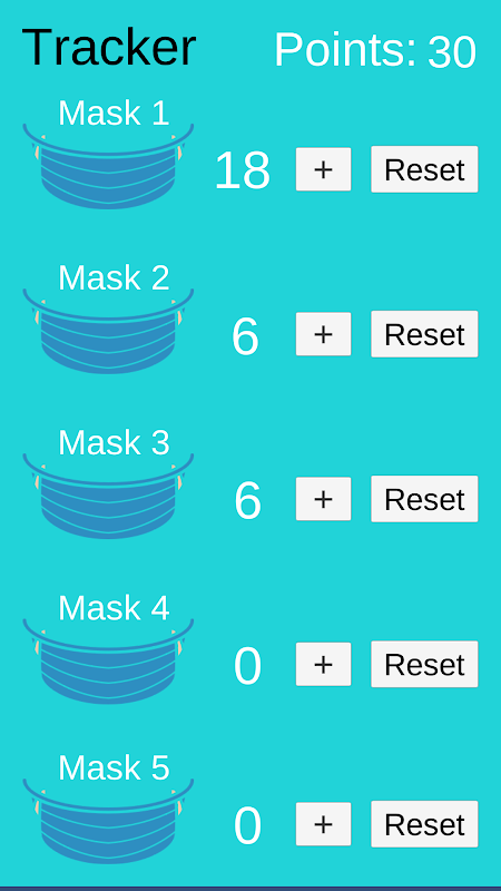 The user will start with 30 points which he/she can allocate to the reusable masks by clicking the plus button.