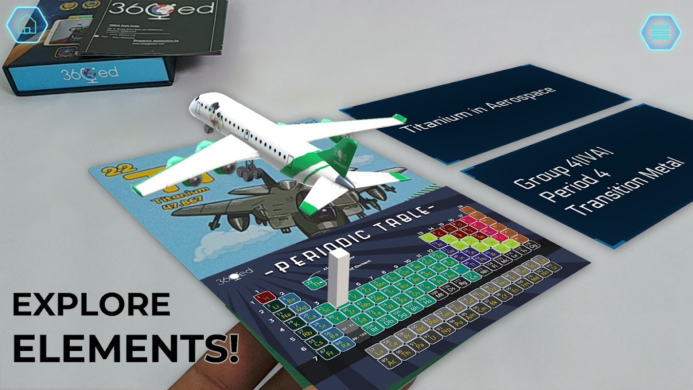 عناصر AR البطاقات التعليمية والتطبيق المعزز واقع التعلم تم تصميمه مع طلاب المدارس الابتدائية والمتوسطة في الاعتبار. تعرض شاشة الواقع المعزز الكيمياء للحياة للمتعلمين بسبب تجربة تعليمية مبنية على لعبة ممتعة. يمكن للمتعلمين بناء مركبات انتقائية من خلال الجمع بين عناصر البطاقات التعليمية. يساعد السرد في التطبيق المتعلمين على فهم أهمية الكيمياء في الحياة اليومية.