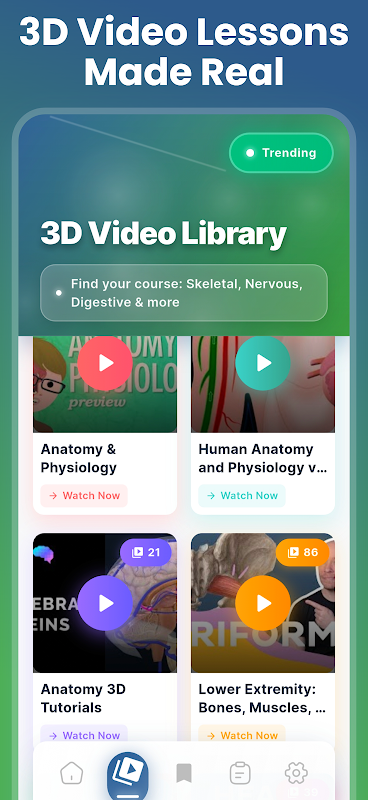 تعلّم تشريح الجسم وعلم وظائف الأعضاء بشكل أسرع مع نماذج ثلاثية الأبعاد تفاعلية، ودروس فيديو عالية الدقة، واختبارات تدريبية، ودروس مفصلة. يُعد هذا المرجع والأطلس الشامل في علم التشريح مثاليًا لطلاب الطب والتمريض والعاملين في مجال الرعاية الصحية الذين يستعدون لامتحانات NEET وMBBS وMCAT وUSMLE وNCLEX.