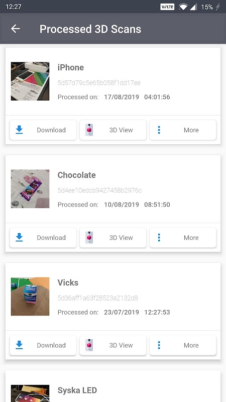 • Capture Photos and Video from your smartphone. The images and video will be uploaded to server and processed to get high quality 3d model.