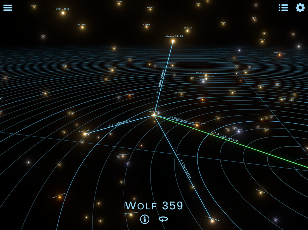 قم بتكبير وتدوير وتحريك الخريطة ثلاثية الأبعاد المحيطة بنظامنا الشمسي، وتعرّف على الأنظمة النجمية المجاورة. انقر على أي نجم للحصول على معلومات تفصيلية عنه، أو استمتع بجولة في الفضاء مع رسوم متحركة خلابة تبعث على الاسترخاء.