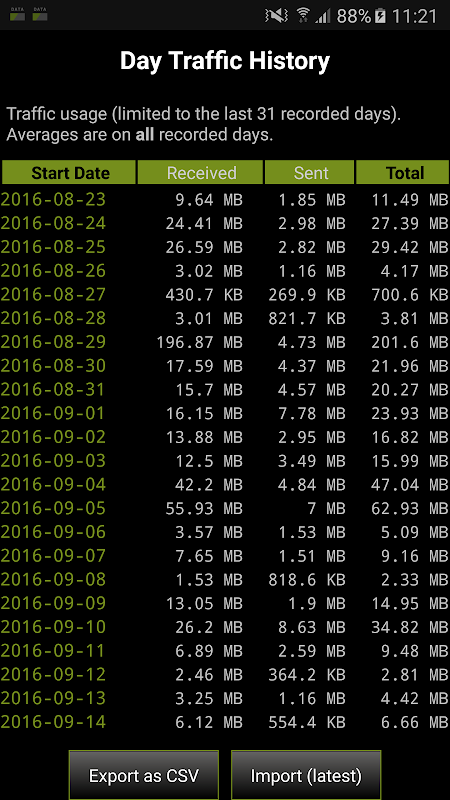 * Counts your Mobile (4G / 3G / Edge / GPRS) & WiFi usage and displays it as graph, text, and table.
