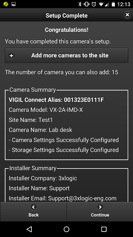 الأداة المساعدة لإعداد VISIX هي مورد سهل الاستخدام لفنيي التثبيت 3xLOGIC. عند تثبيت VISIX V-Series All-in-One Cameras ، قد يستخدم فني التطبيق لمسح ملصق رمز الاستجابة السريعة على الكاميرا. بعد التحقق من معلومات تسجيل دخول الكاميرا ، سيتم حفظ معلومات الكاميرا في التطبيق والتي يمكن إرسالها لاحقًا إلى العميل (جنبًا إلى جنب مع معلومات من جميع الكاميرات المثبتة الأخرى لهذا الموقع) لسجلاتهم الخاصة. أيضًا ، يتم توفير معاينة فيديو من الكاميرا حتى يتمكن الفني من التأكد من أن مجال رؤية الكاميرا واضح ويحقق منظور المشاهدة الصحيح ، وفقًا لاحتياجات العميل.