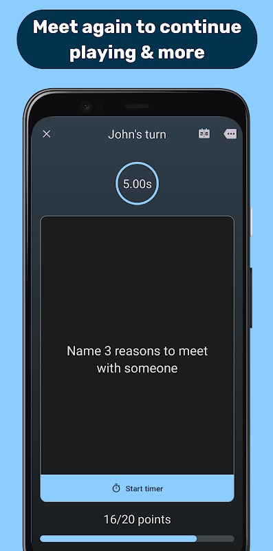 واحدة من أفضل الأشياء في قاعدة الخمس ثوانٍ هي ميزة الحد الزمني القابل للتخصيص. سواء كنت ترغب في لعب لعبة سريعة مع مهلة زمنية مدتها 5 ثوانٍ أو تحدي نفسك بحد زمني مختلف ، فأنت تتمتع بالمرونة للعب على طريقتك. وبأسئلة مضحكة وجذابة ، لن تشعر بالملل أبدًا من لعب هذه اللعبة.