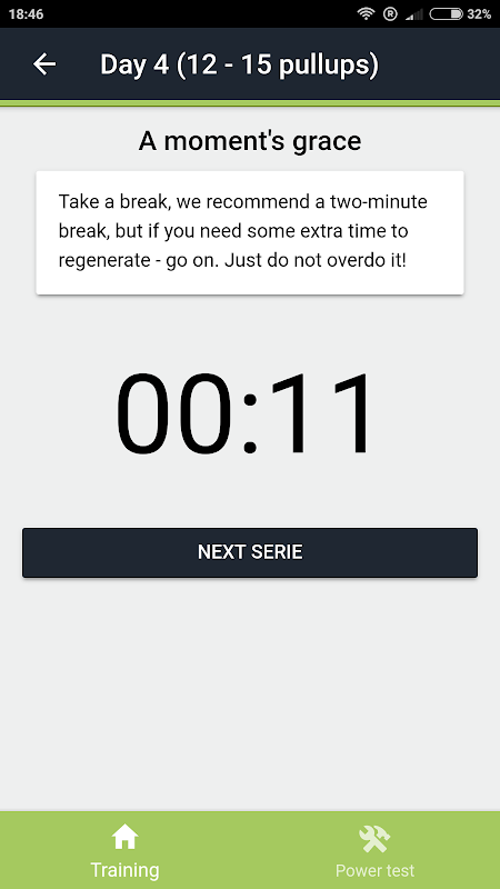 Personal training application. At the begining there is test, after that system will get you optimal training. It will remember every data for you. All you need to do is pull up!