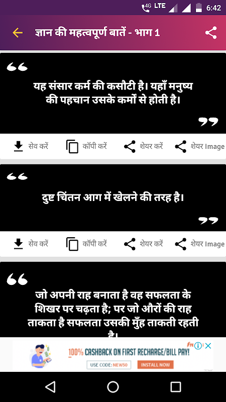 Some features of 500 ज्ञान की आवश्यक बातें Android App.