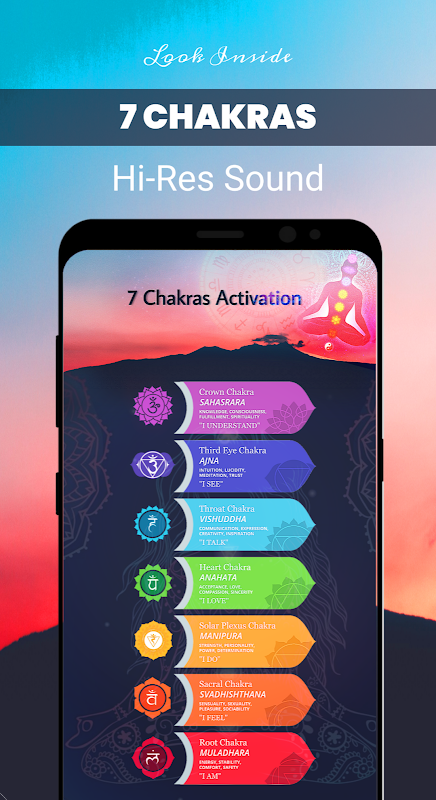 تطبيق 7 Chakra Healing: Music for Brain Relaxation (Binaural Waves) يساعدك في شفاء آلامك الجسدية والعاطفية ، وتفعيل القدرات النفسية ، وتفعيل موجات الدماغ (موجات الأذنين) والاستمتاع برحلتك الروحية.