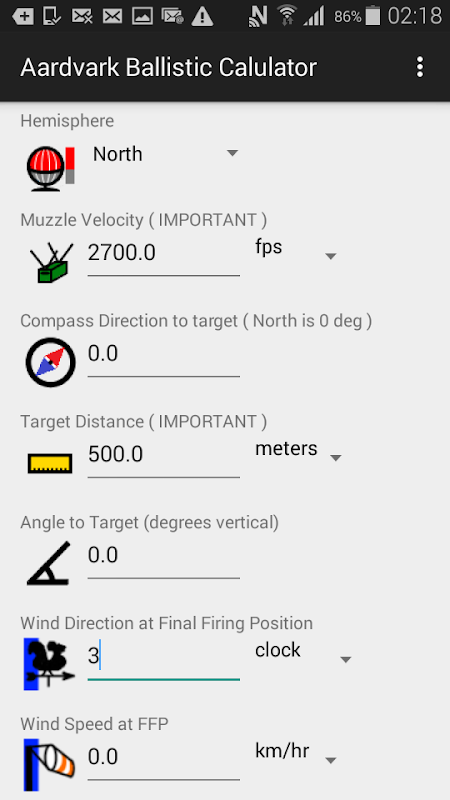 Aardvark Ballistic Calculator is very quick and easy, yet it is very advanced, giving a precise firing solution for extremely long range shooting. It starts off fast, with minimal images, for instant loading. Icons allow you to find what you need to change in a hurry, without reading every heading. The program is precise at extremely long range, as an example; the latitude is taken into account when calculating gravity. Advanced calculations include Spin Drift, Vertical and Horizontal Coriolis effect.